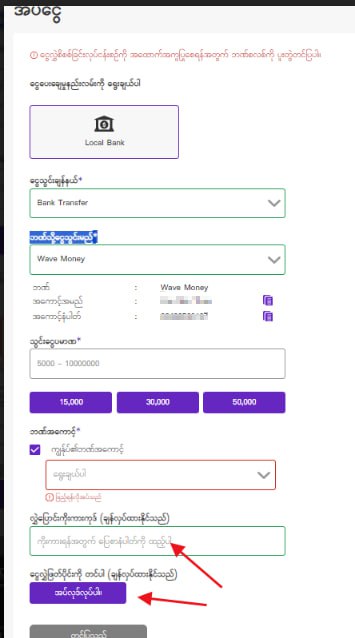6. ဝက်ဆိုဒ် တွင် အကောင့်ဖွင့်ပြီး ဘယ်လိုငွေဖြည့်ရမလဲ? စနစ်တကျ လွယ်ကူစွာငွေဖြည့်နိုင်သော ငွေလွှဲနည်းလမ်းများစွာ အသုံးပြုနိုင်သည်။